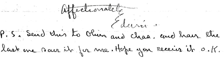 I have given you but a sketch; you will know plenty when you are sure we are alright. But I’ll try to write soon again – about a week. I guess it will be useless for you to write us until the mail-service is in working order again.