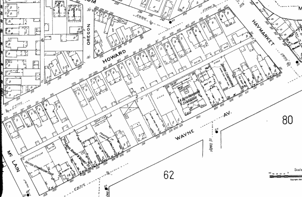 In my research I enjoy digging into old maps to find locations that are referenced in sources. In this case, I learned that the club was located on Wayne Ave near today’s Oregon District, and we can see exactly where it was located in the map below. (Look to the bottom left corner, at the corner of Wayne and Mc Lain.