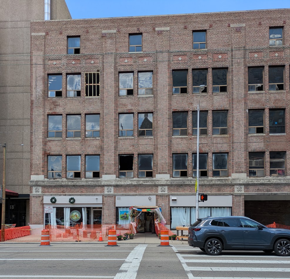 A WKEF story in early March reported that “The businesses and sidewalks were closed earlier this month due to structural integrity concerns … the City of Dayton’s Director of Planning said the structure has been a concern of theirs for a while, even being flagged as recently as August. ‘This building has been identified over time. If you might recall a car went through the front, we had to actually take emergency actions a year or two ago to remove a sign that was falling, again, that the owner neglected to respond to. There have been issues with this structure prior to this, with notifications from our team about the conditions’ … (The) Fire Department requested an inspection from city staff after seeing multiple hazards. The inspection resulted in a public nuisance order sent to building owner Paul Hutchins on February 23rd, and on March 3rd, sidewalk barriers went up surrounding the property.”