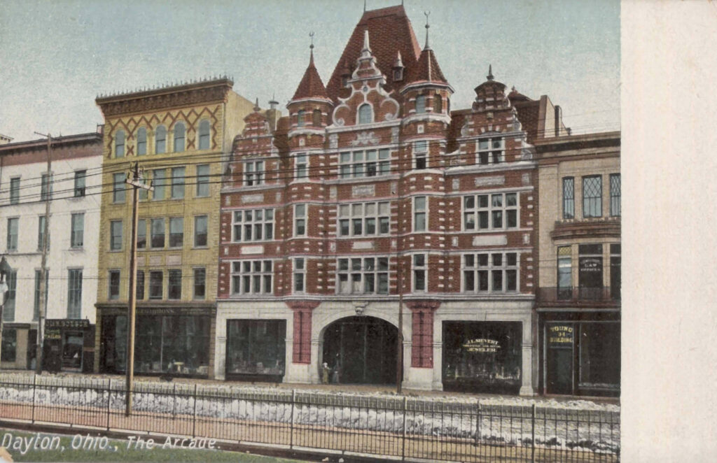 Today it’s not one of the 9 interconnected buildings in the Dayton Arcade redevelopment, but the 3-story structure immediately to the west of the Third Street Building has an interesting history of its own as well as a long association with the complex.